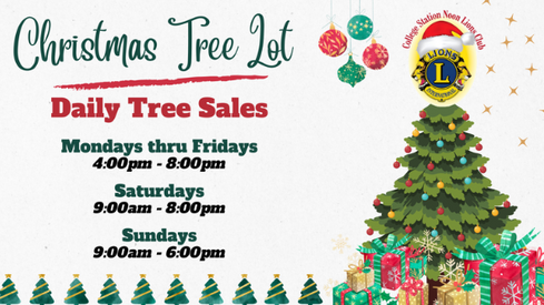 El College Station Noon Lions Club anunció la apertura de su Annual Christmas Tree Project Fundraiser este miércoles 26 de noviembre, de 9:00 a.m. a 6:00 p.m., en 2605-2607 Texas Avenue S., frente a Aggieland High School. El lote ofrecerá árboles entre 5 y 12 pies de altura, con variedades Korean y Canaan Fir, manteniendo una tradición que por generaciones ha reunido a familias del Brazos Valley para elegir su árbol perfecto.